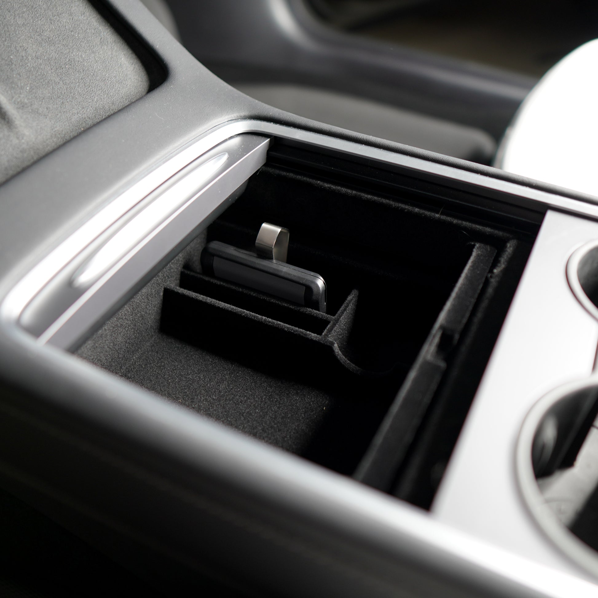 Our Sliding Center Organizer for Model 3 & Y is the perfect way to keep your items organized and quickly accessible.