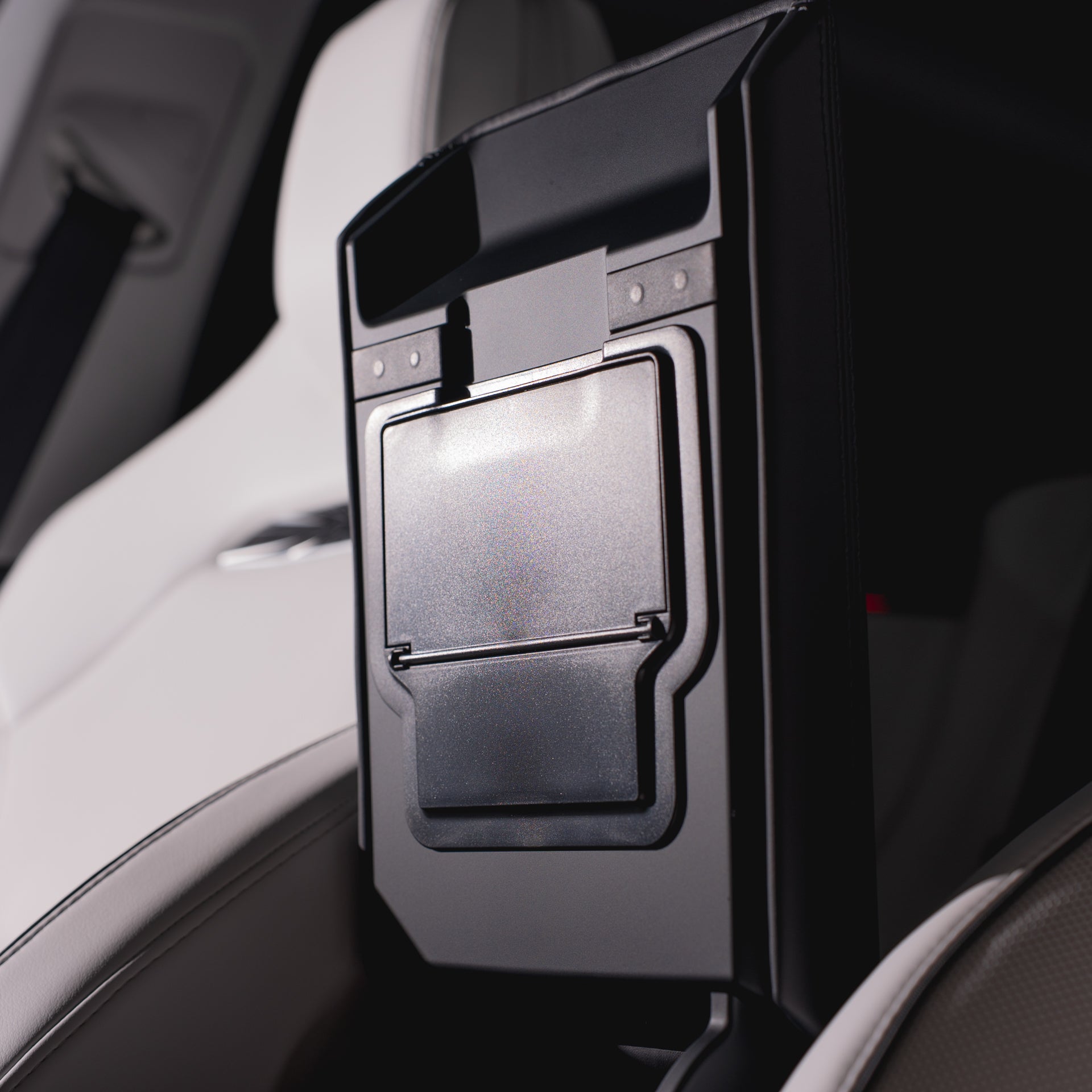 Our Hidden Armrest Storage Compartment for the new Model 3 Highland/Model Y Juniper is the ultimate way to discreetly store your valuables. Just open via the push and lock door, place your items, and close!